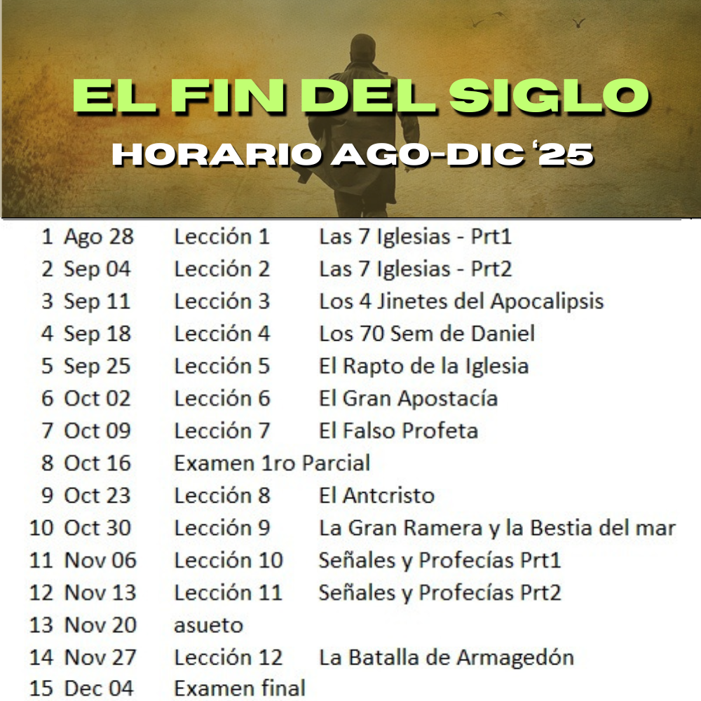Nueve veces en el Nuevo Testamento, Cristo advirtió a sus seguidores que estuvieran atentos a las señales de su segunda venida y del fin de los tiempos. ¿Cómo puede alguien estar atento si no sabe qué está esperando: las señales del fin de la presente dispensación? En este curso, el primero de una serie de cuatro partes, los estudiantes adquirirán una comprensión integral de la Cronología de los Eventos Finales, las Siete Iglesias en Asia, los Cuatro Jinetes del Apocalipsis, las 70 Semanas de Daniel, el Rapto de la Iglesia, el Falso Profeta, la Bestia, el Anticristo, la Batalla de Armagedón y la Gran Ramera.